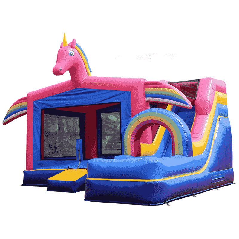 pink blue unicorn rainbow inflatable bounce house with slide commercial grade