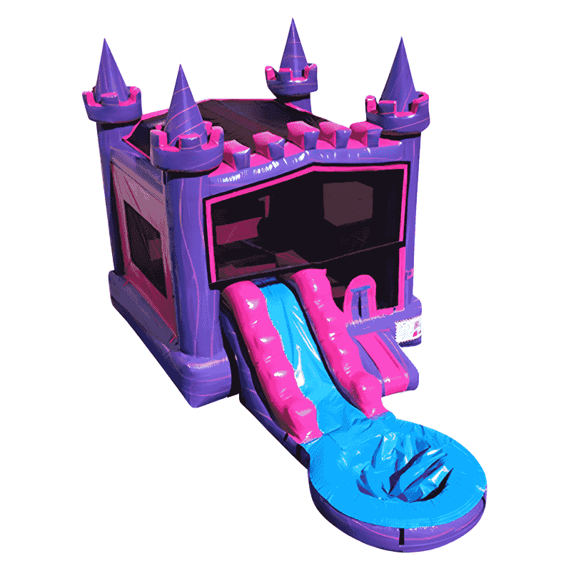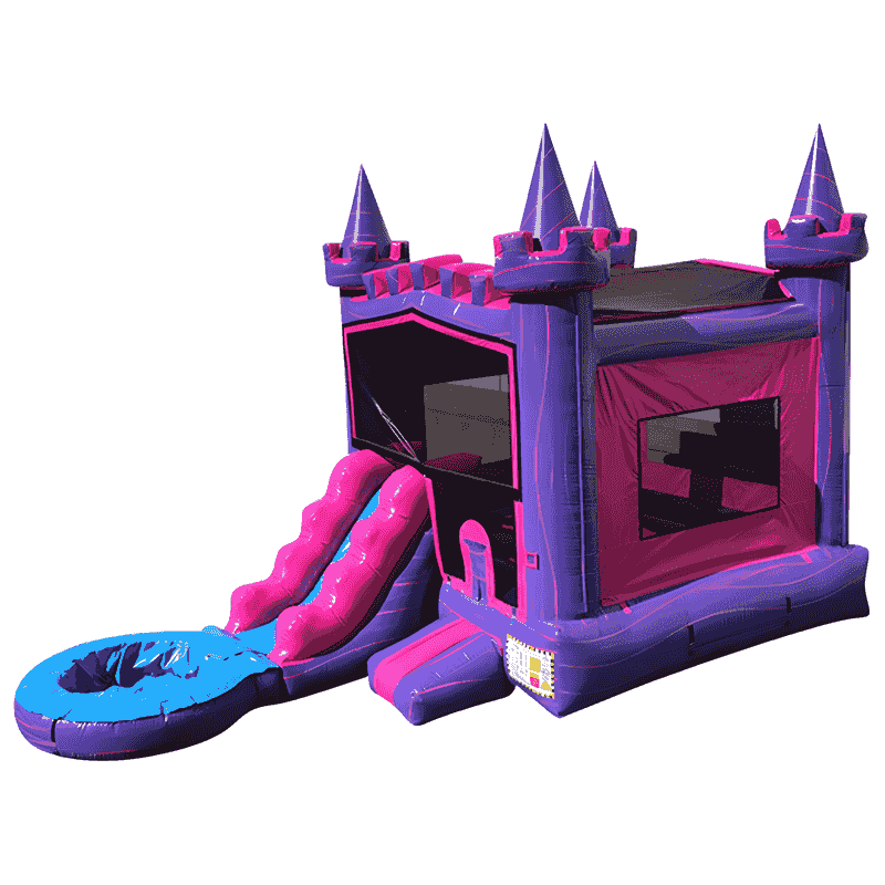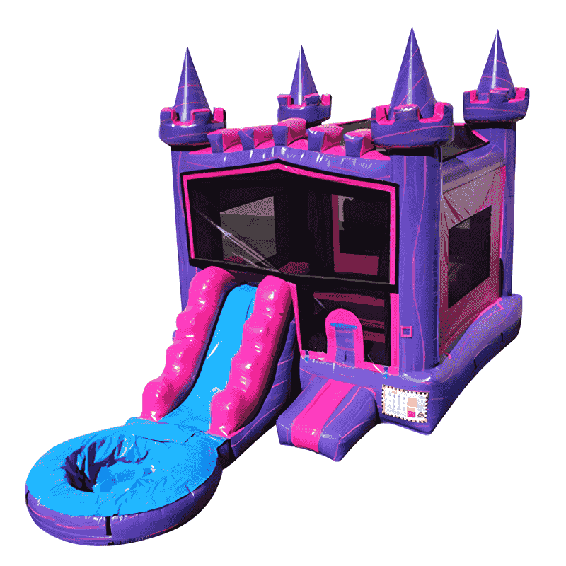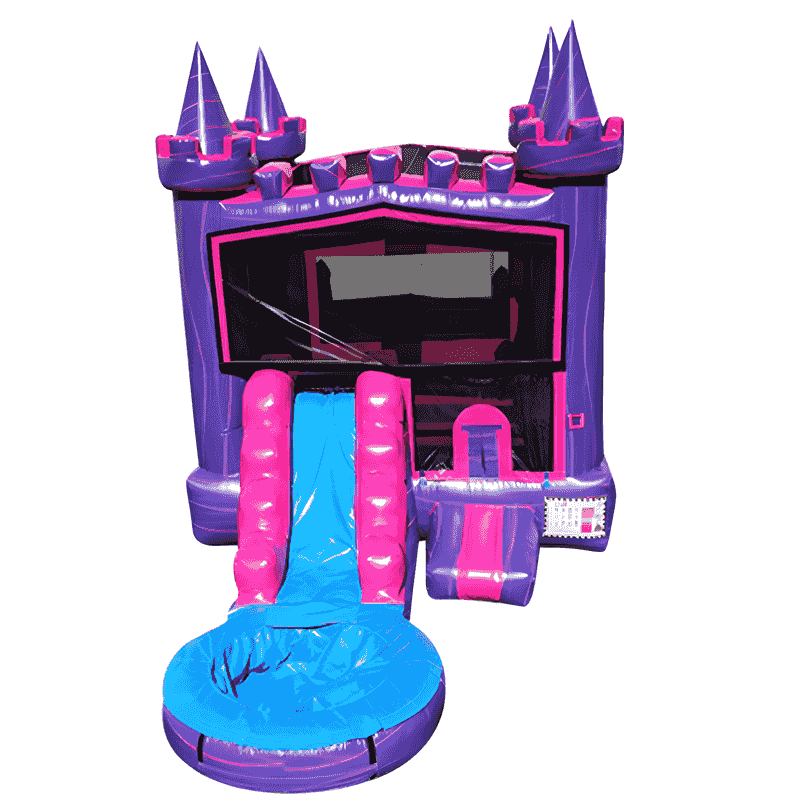 Let every little girl feel like royalty with our Pink & Purple Princess Castle Inflatable Bounce House! This elegant inflatable combines a regal castle-themed bounce house, a vibrant pink water slide, and a refreshing splash pool, creating a magical play space that will be the highlight of any birthday party or princess-themed event.